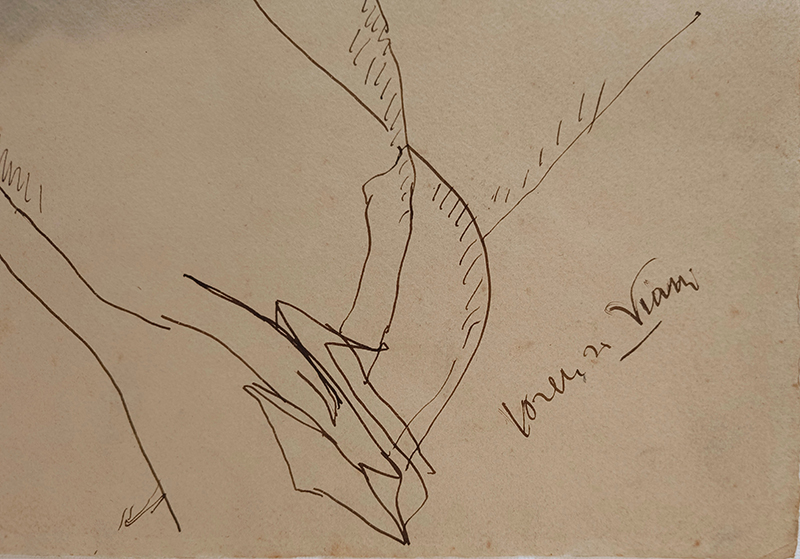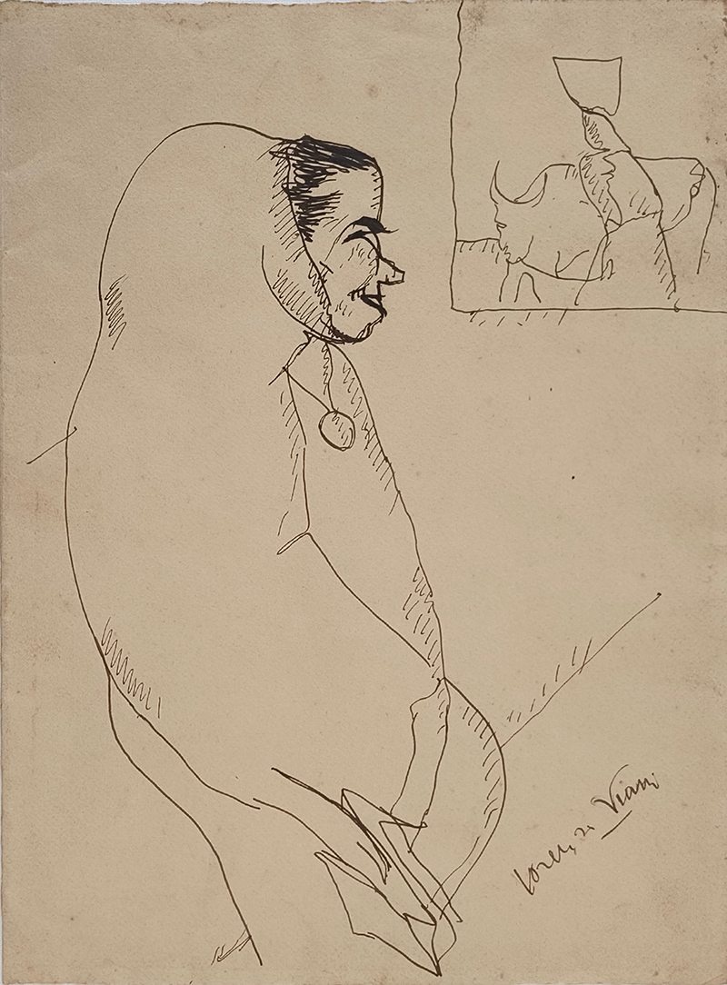 Disegno a penna e inchiostro bruno su carta avorio