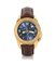Cassa massiccia in oro giallo 18 kt con fondello chiuso da viti, corona al 4, lunetta graduata e girevole, vetro zaffiro. Quadrante blu con indici e numeri arabi applicati, lancette luminescenti, secondi tra il 10/11, riserva di carica al 6 e data tra 1/2. Movimento a carica automatica. Quadrante, cassa e movimento firmati. Completo di cinturino, fibbia deployante in oro giallo 18 kt originali, astuccio e certificato del 05/2006.