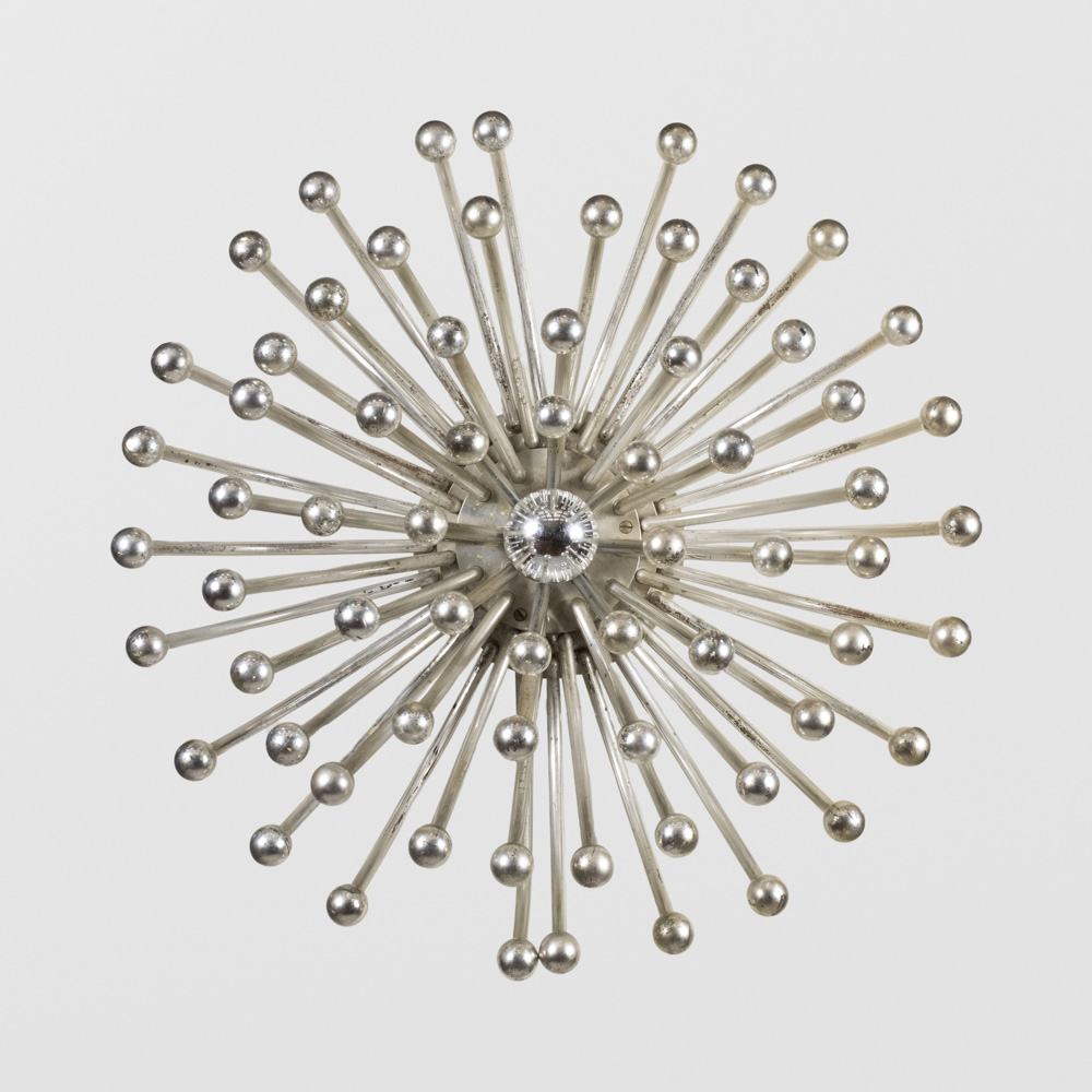 Studio Tetrarch, prod. ValentiItalia, anni 7032x60 cm.lampada da parete, tavolo o soffitto mod. Pistillo in resina metallizzata, marchio della produzione, usure