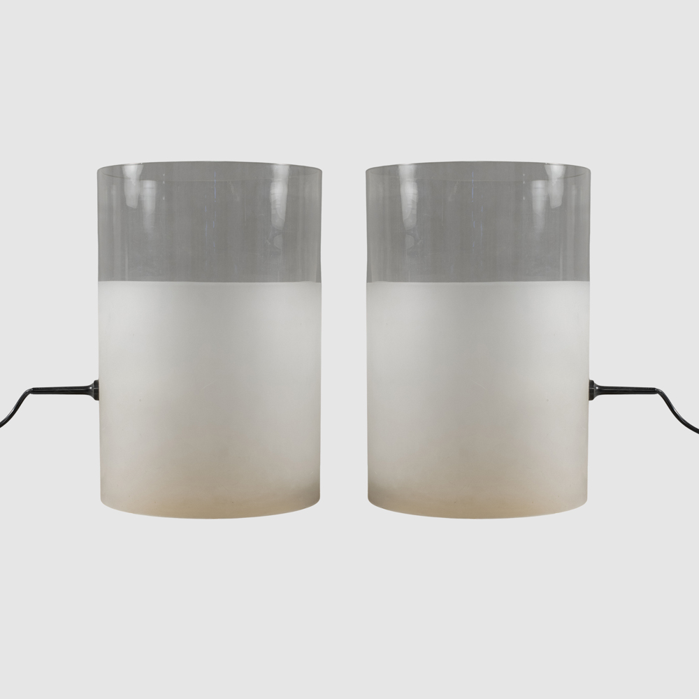 Guido Rosati, prod. Fontana Arte (2)Italia, anni 7039x26 cm.coppia di lampade da tavolo mod. Fatua in vetro trasparente e vetro satinato.