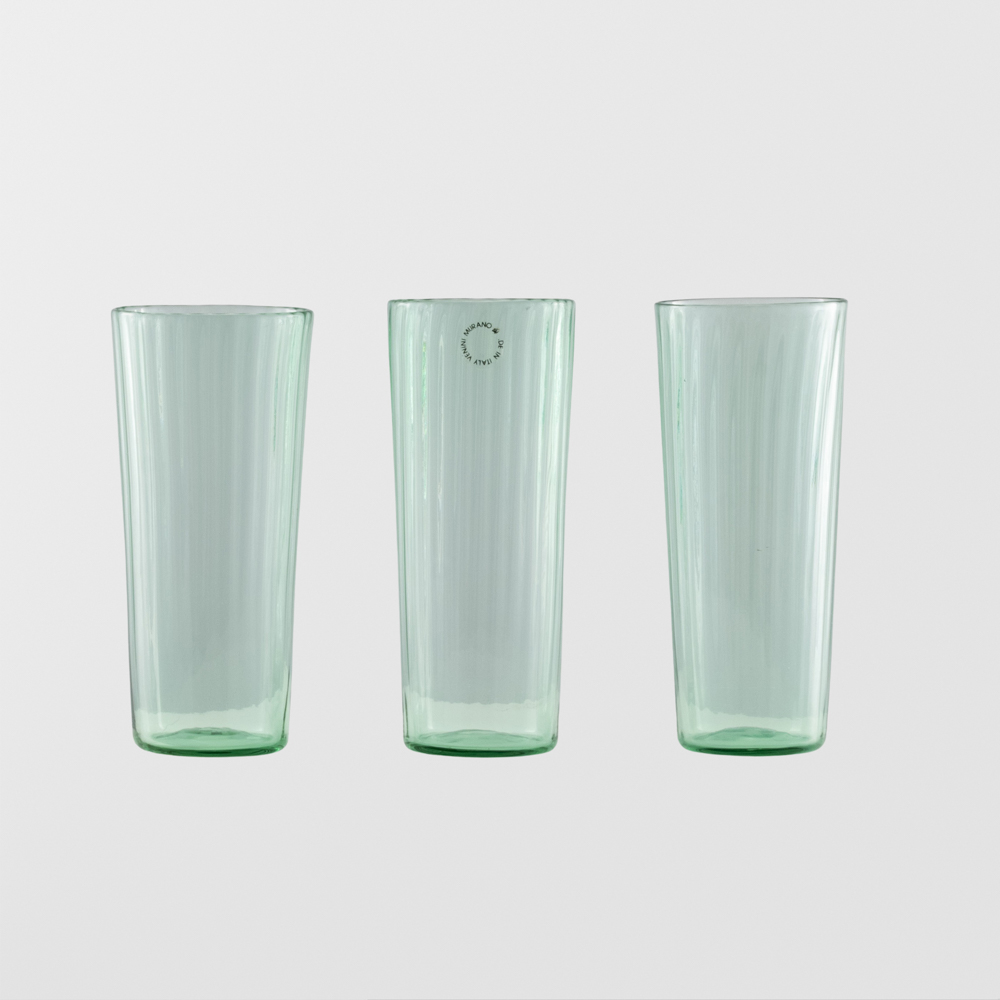 Prod. Venini (17)Murano, 1989h. 15,5 cm.set di diciassette bicchieri da bibita in vetro soffiato colorato, firma e data a punta, etichetta della produzione