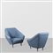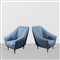 Ico Parisi, prod. Ariberto Colombo (2)Italia, anni 5084x86x90 cm.coppia poltrone in legno e tessuto imbottito.
