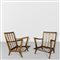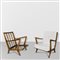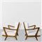 Gio Ponti, prod. Cassina (2)Italia, anni 5078x62x70 cm.coppia di poltrone in legno e tessuto imbottito, lievi usure.