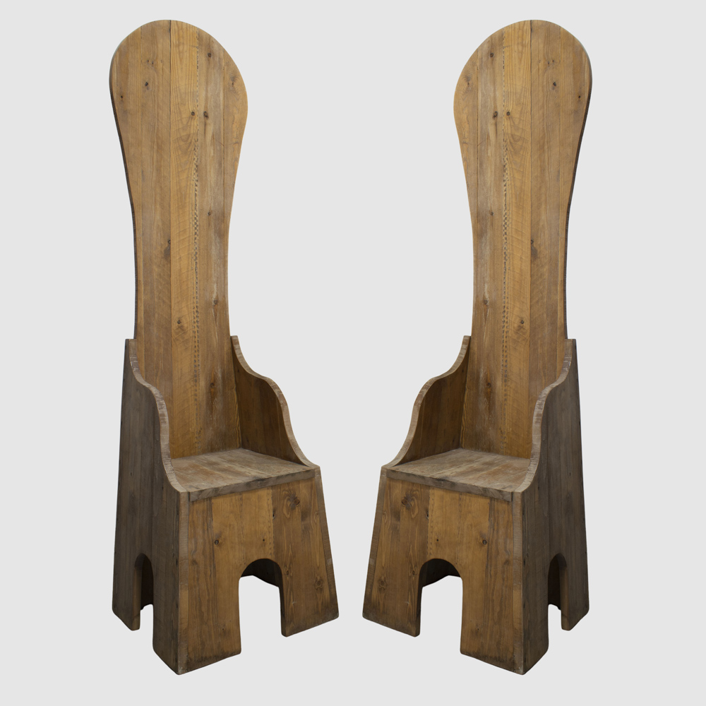 Mario Ceroli (2)Italia, anni 70190x55x50 cm.coppia di sedie serie Mobili nella Valle in legno.