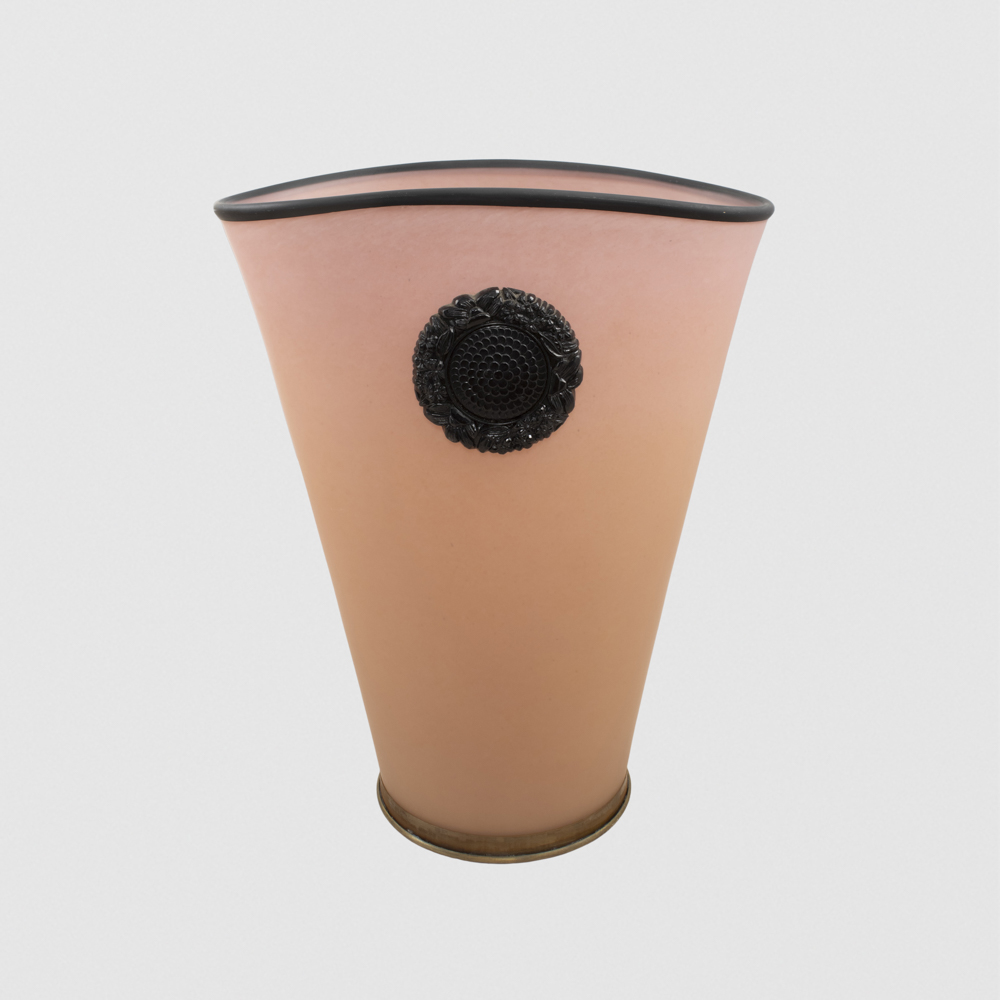 Tommaso BarbiItalia, anni 7037x32x20 cm.lampada da tavolo in vetro colorato satinato, etichetta della produzione