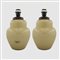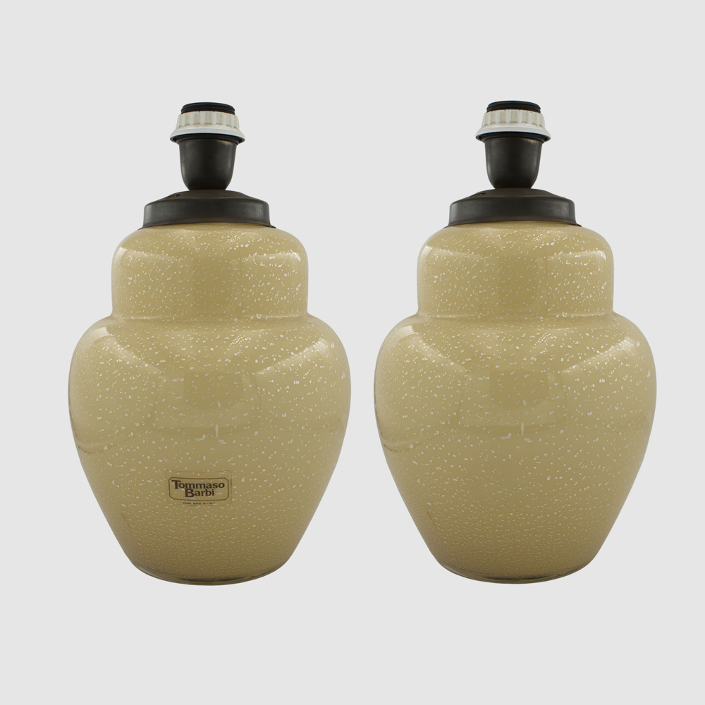 Tommaso Barbi (2)Italia, anni 70h. 35 cm.coppia di lampade da tavolo in vetro lattimo e foglia d'argento, etichetta della produzione