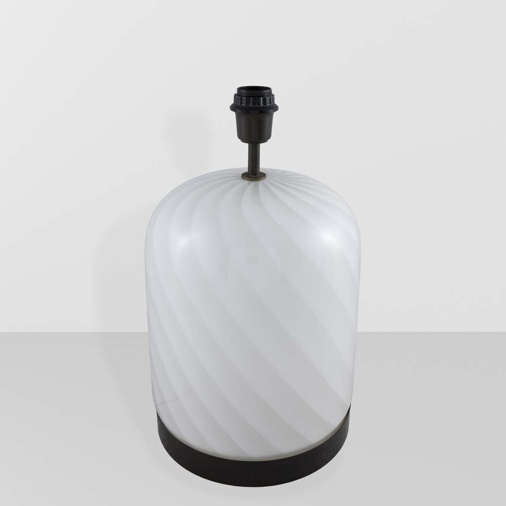Tommaso BarbiItalia, anni 7043x26 cm.lampada da tavolo in ottone e vetro opalino, etichetta della produzione, lievi difetti