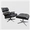 Charles e Ray Eames, prod. Herman Miller - ICF Milano (2)Italia, anni 70poltrona 79x92x84 cm. - poggiapiedi 44x66x55 cm.poltrona mod. 670 con poggiapiedi mod. 671 in legno curvato, alluminio e pelle, lievi usure e difetti
