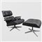 Charles e Ray Eames, prod. Herman Miller - ICF Milano (2)Italia, anni 70poltrona 79x92x84 cm. - poggiapiedi 44x66x55 cm.poltrona mod. 670 con poggiapiedi mod. 671 in legno curvato, alluminio e pelle, lievi usure e difetti