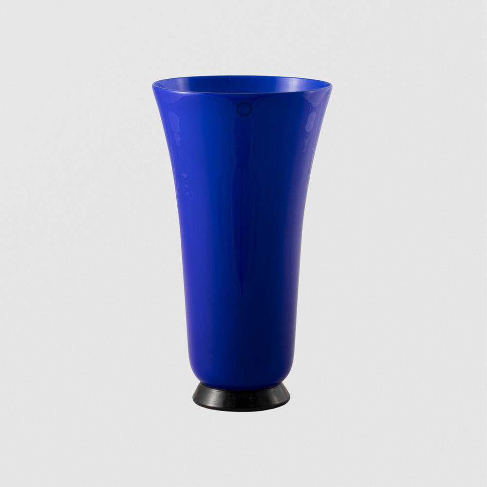 Prod. VeniniMurano, 1995h. 28 cm.vaso serie Anni 30 in vetro soffiato incamiciato blu e nero, firma e data a punta, etichetta della produzione