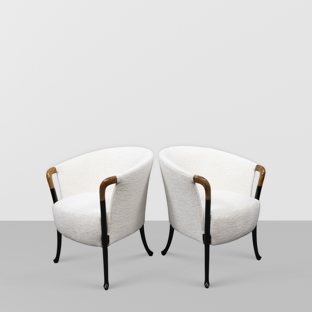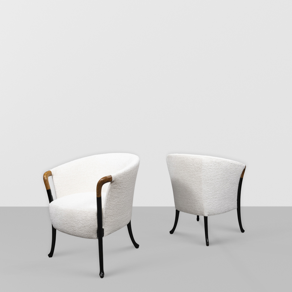 Prod. Giorgetti (2)Italia, anni 8082x70x70 cm.coppia di poltrone in legno e tessuto imbottito