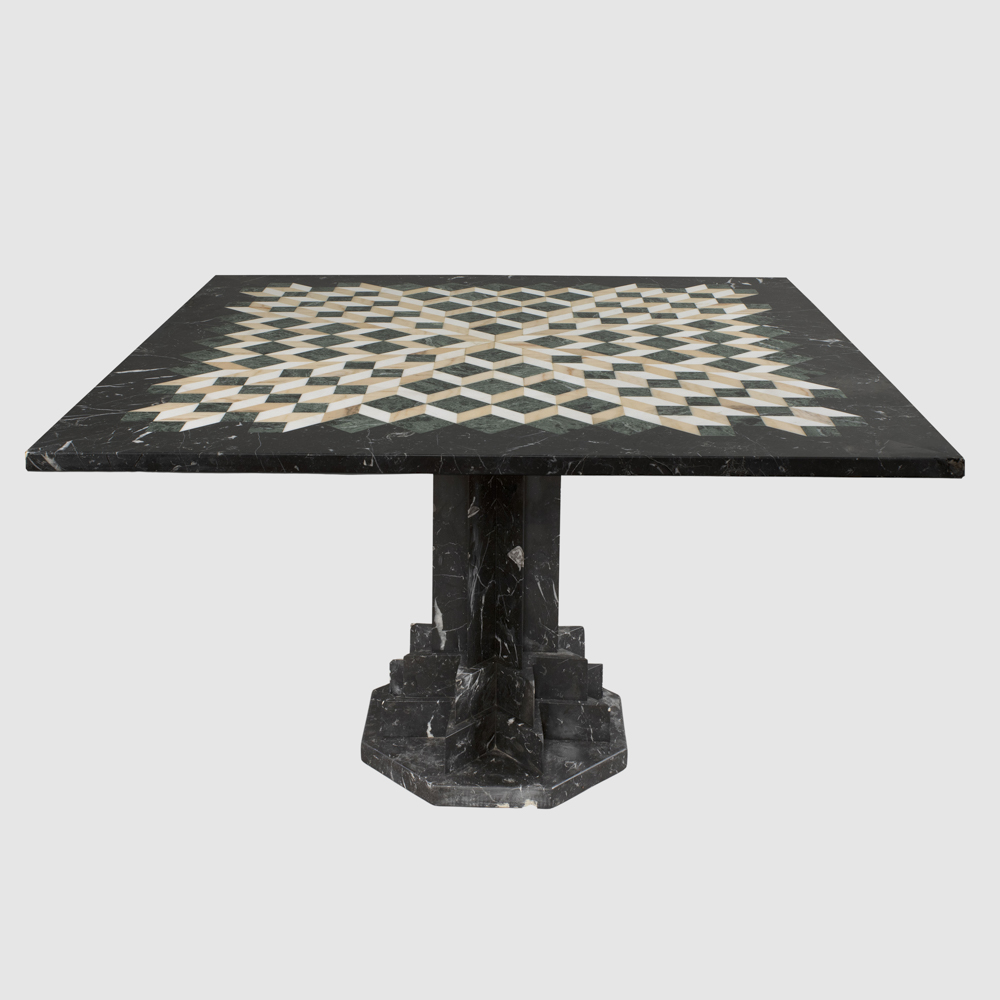 Paolo Portoghesi, prod. Società del Travertino RomanoItalia, anni 8077x127x127 cm.tavolo in marmi policromi, lievi difetti.