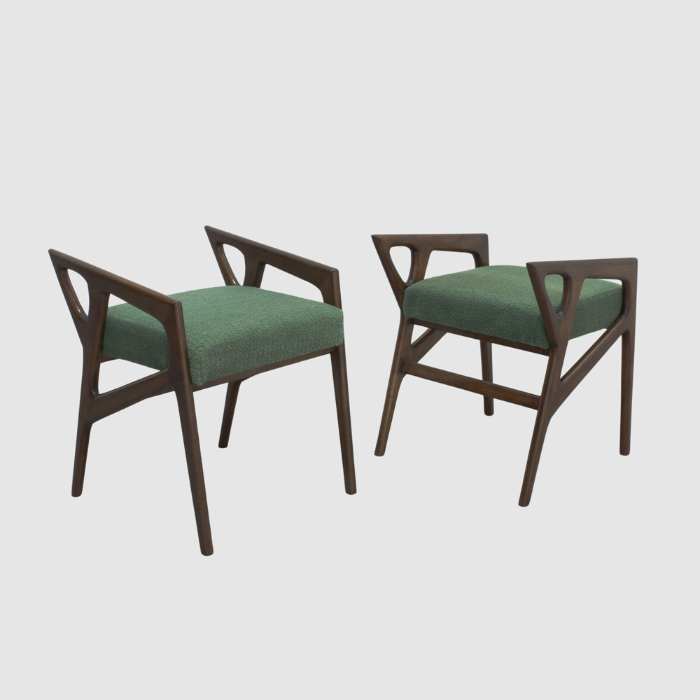 Gio Ponti (2)Italia, anni 5054x45x50 cm.coppia di sgabelli in legno e tessuto imbottito, lievi usure