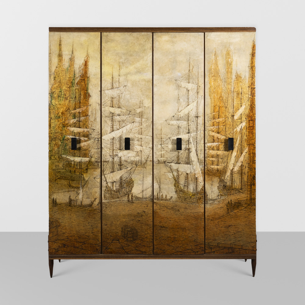 Manifattura italianaanni 50174x142x32 cm.armadio appendiabiti in legno, legno stampato ed ottone