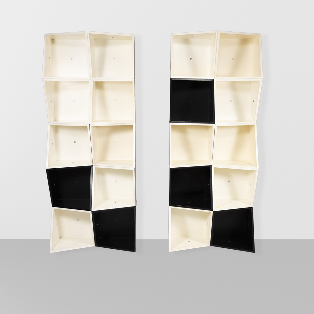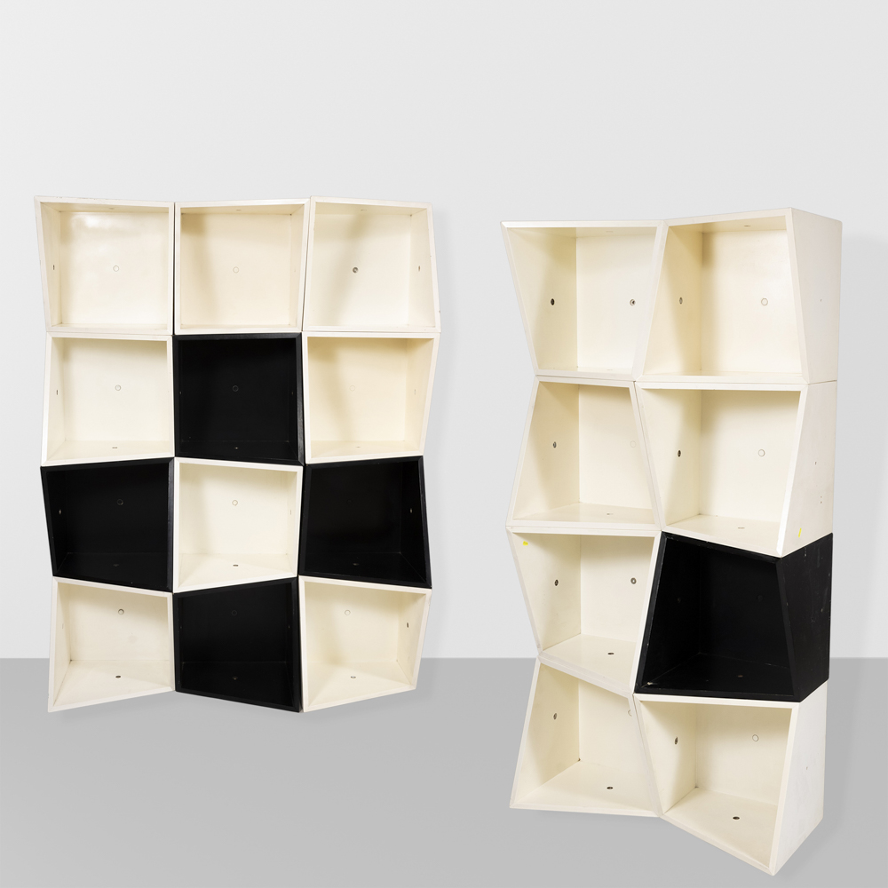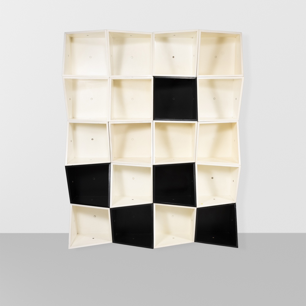 Manfredo Massironi, edizione Nikol, Manzano (20)Italia, anni 70singolo modulo: 40x40x35 cm.libreria modulare Lineare Kappa in legno laccato e metallo laccato, usure.