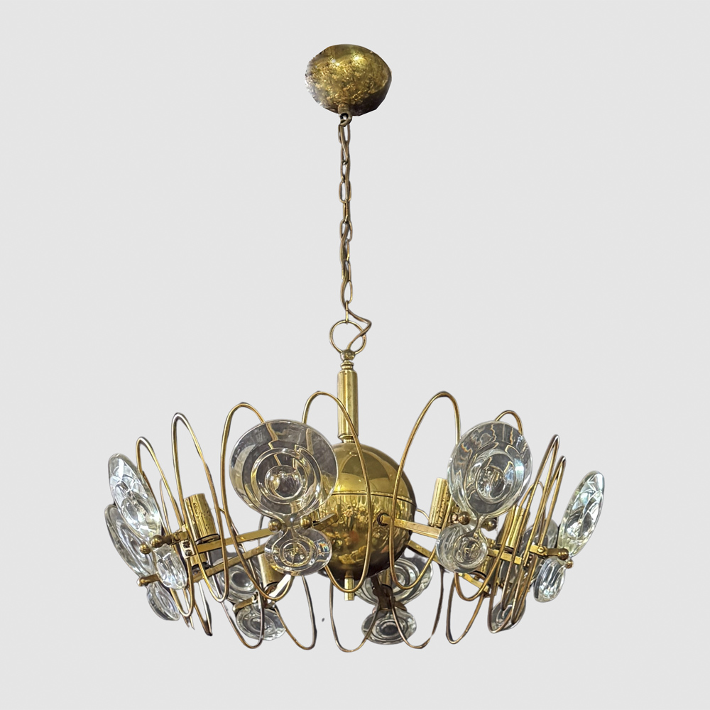Oscar Torlasco, attribuitoItalia, anni 50-6090x70 cm.lampada a sospensione in ottone e vetro trasparente, lievi usure