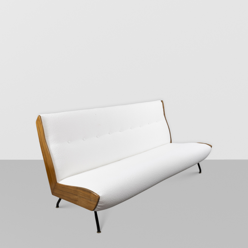 Manifattura italianaanni 6087x187x70 cm.divano in legno, metallo verniciato e tessuto imbottito
