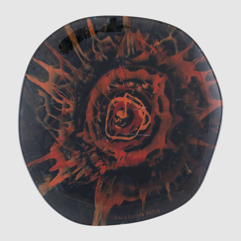 Duilio Bernabè detto Dubè, prod. Fontana ArteItalia, anni 50d. 54 cm.grande piatto in vetro lavorato, firmato, lievi difetti