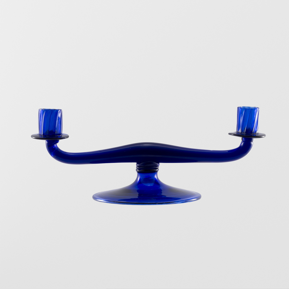 Prod. CVMMurano, anni 20-3012,5x33x15 cm.candeliere in vetro soffiato colorato, firma all'acido