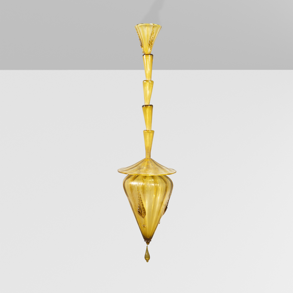 Vittorio Zecchin, prod. MVM CappellinMurano, anni 30h. 103 cm.lampada a sospensione in vetro soffiato colorato, lievi usure