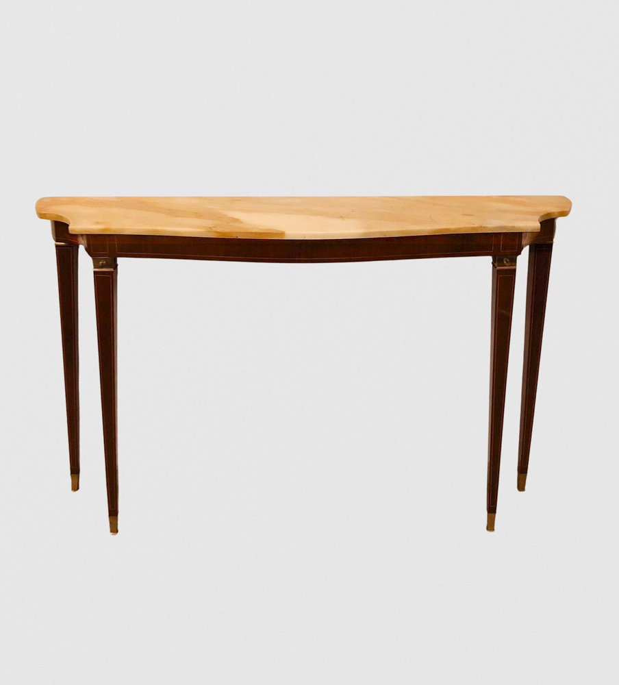 Manifattura italianaanni 5092x145x35 cm.console in legno, ottone e marmo, lievi usure