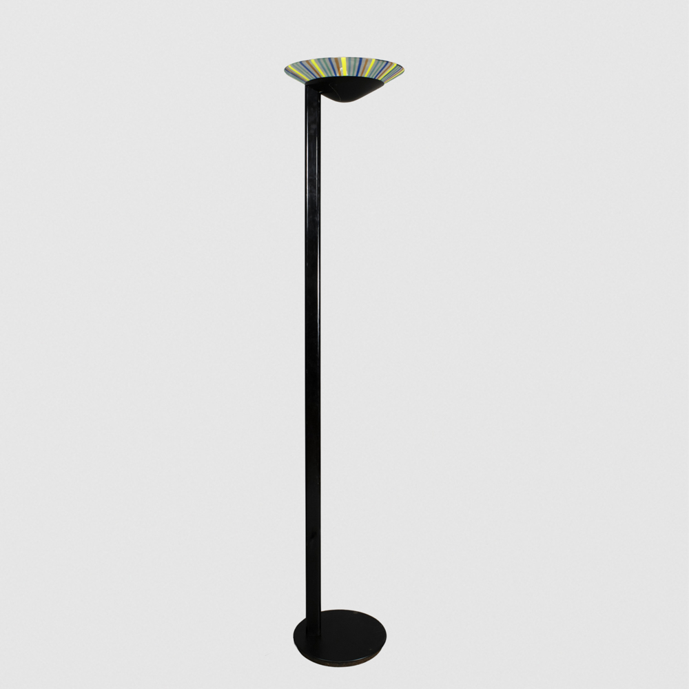 Lino Tagliapietra, attribuitoItalia, anni 70h. 183 cm.lampada da terra in metallo laccato e vetro colorato, marchio della produzione