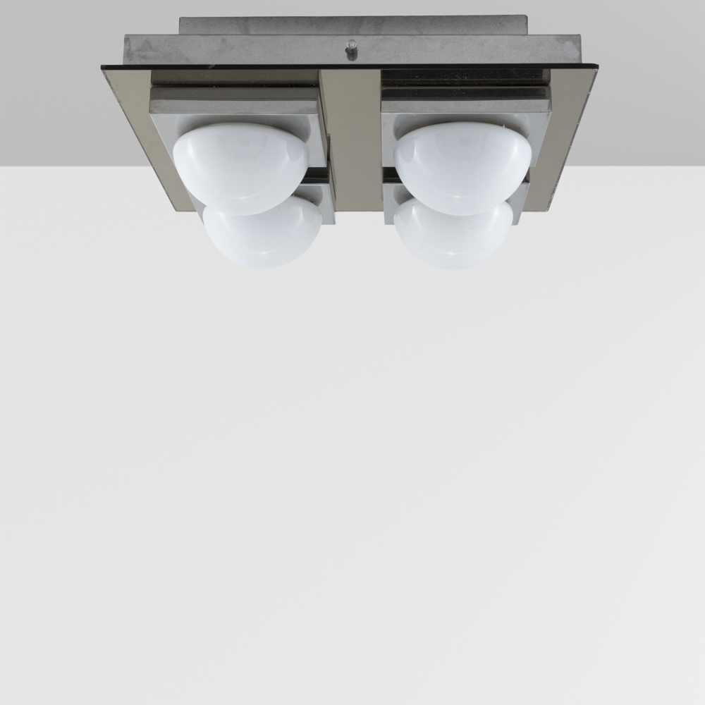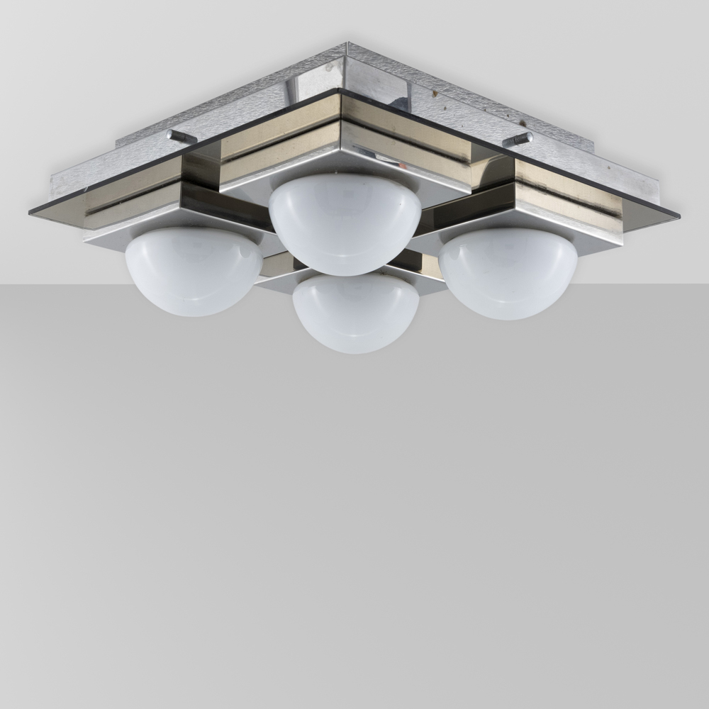 Prod. VecaItalia, anni 7040x40x17 cm.lampada da soffitto in metallo cromato e vetro opalino