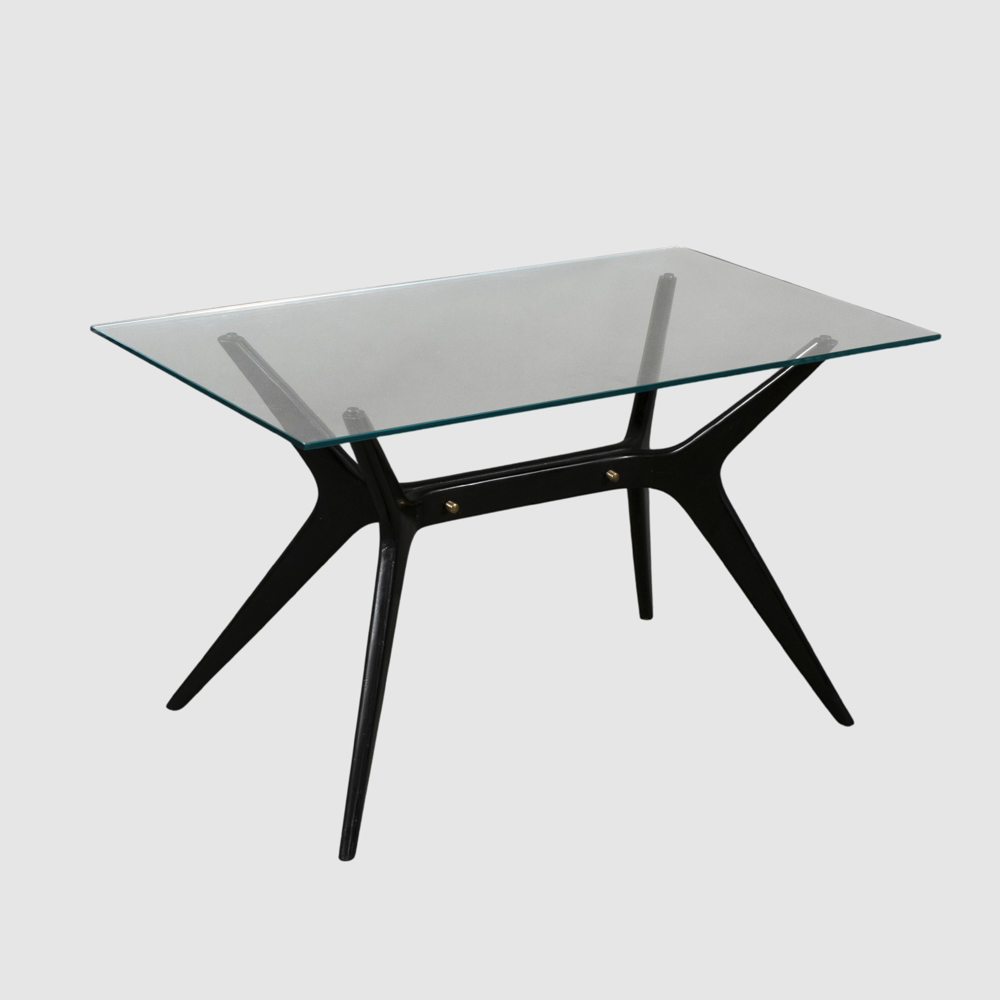 Ico Parisi, attribuitoItalia, anni 5049x86x48 cm.tavolino basso in legno dipinto, ottone e vetro trasparente