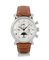 Cassa in acciaio con oblò sul fondello chiuso da viti, anse curve, pulsanti tondi e vetri zaffiro. Quadrante argentato inciso con numeri romani smaltati, contatore a 30 minuti, data a sfera al 12 e fasi luna al 6. Movimento a carica manuale. Quadrante, cassa e movimento firmati. Completo di cinturino e fibbia in acciaio originali.