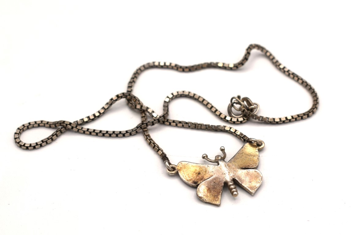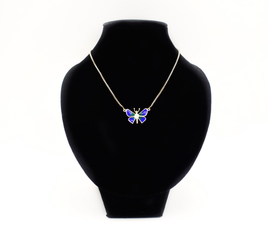 Collana in argento con farfalla smaltata blu
