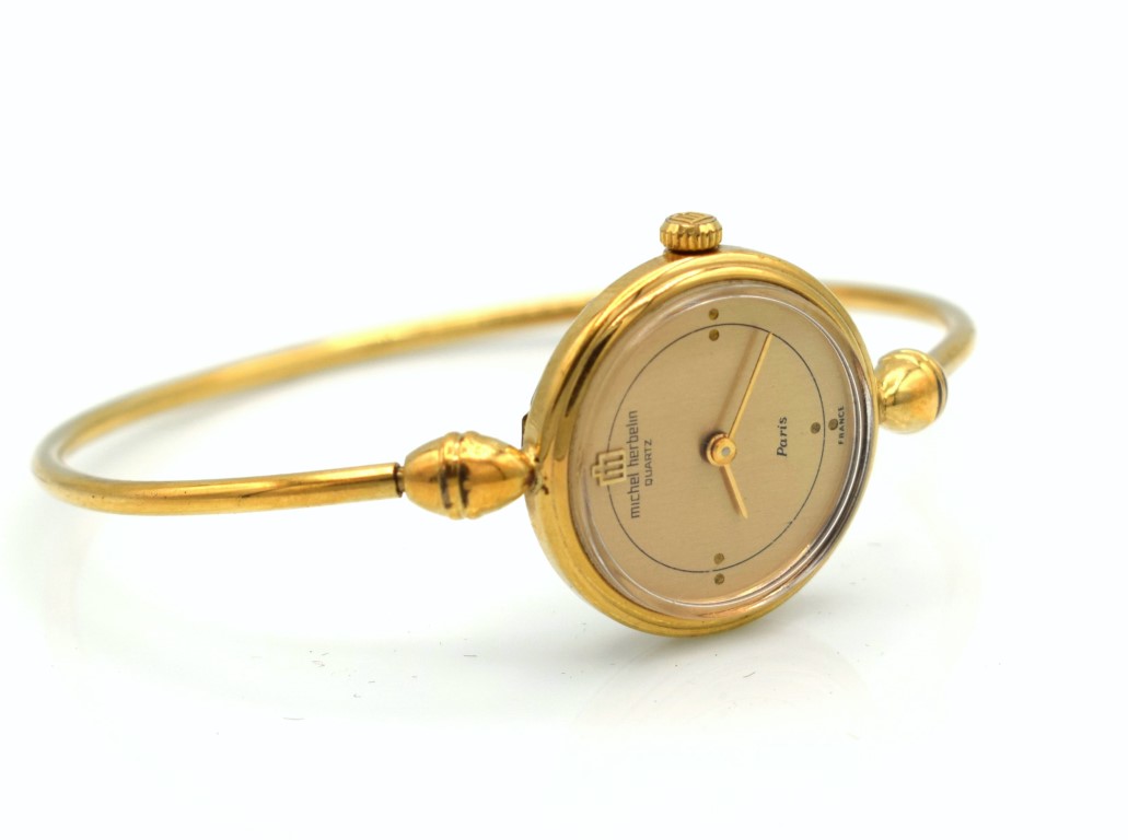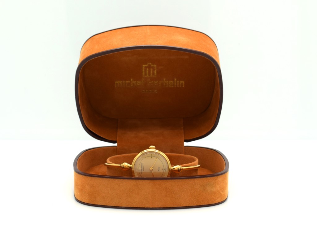Modello Vintage laminato quartz. N. di seriale 10210. Orologio al quarzo con cassa laminata in metallo 3210, bracciale integrato alla cassa a filo. Quadrante originale nei toni dello champagne con logo. Calibro Quartz FE 6820. Sfere a baionetta laminate. Corona laminata con logo. Fondo in acciaio e vetro plexy.