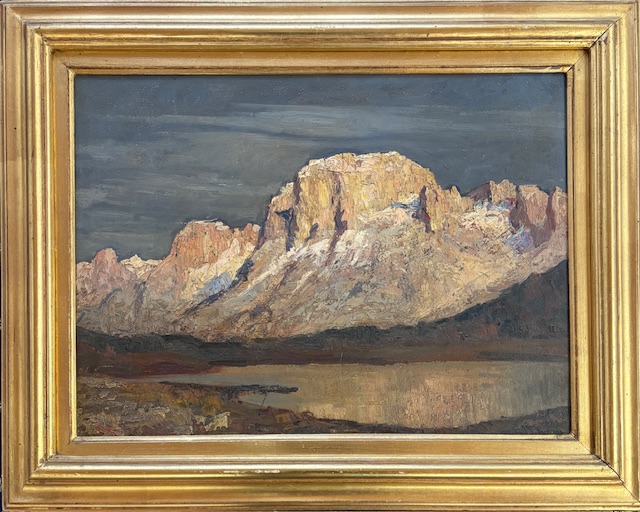 Luigi Vicentini Pomarolo (TN) 1901 - 1970 Nomi (TN) La Marmolada Olio su cartone cm 39x53,5 firmato in basso a dx