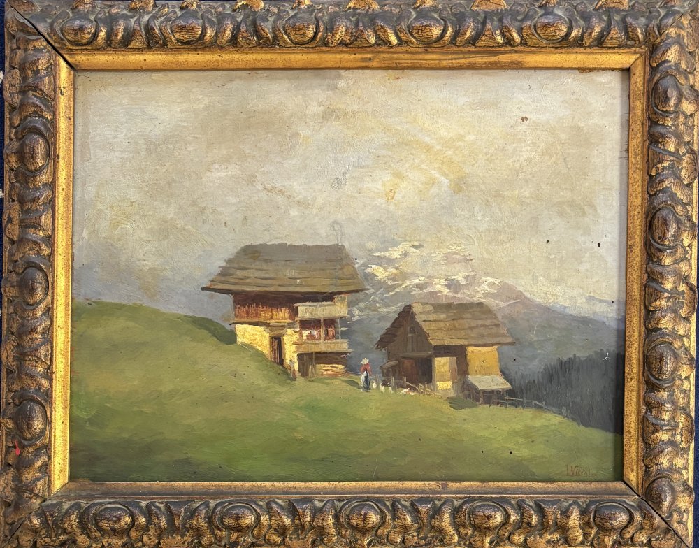 Luigi Vicentini Pomarolo (TN) 1901 - 1970 Nomi (TN) Casa alpina Olio su tavola cm 30,5x40,5 firmato in basso a dx