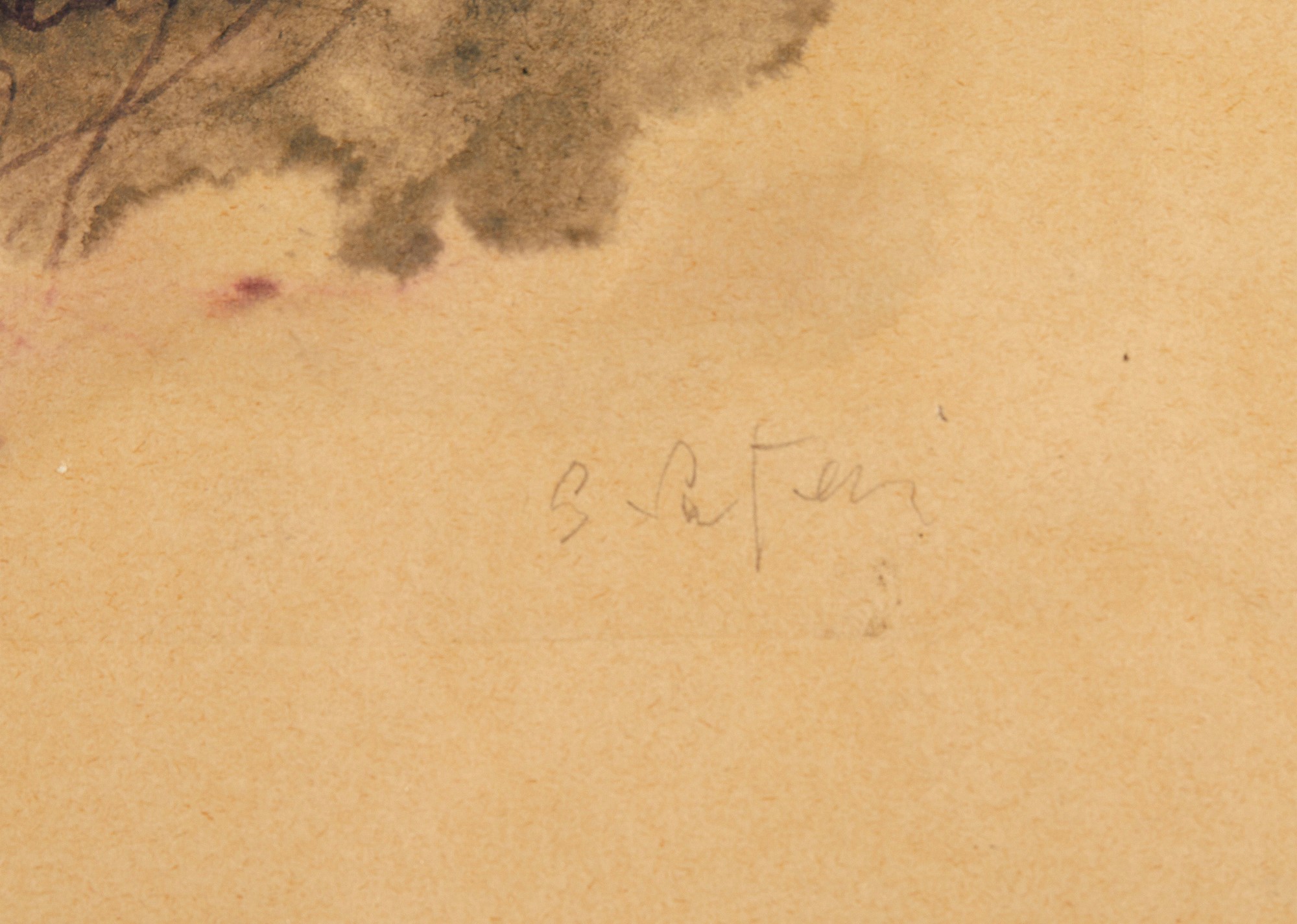 GERMANO SARTELLI (Imola 1925 – Imola 2014) “Paesaggio”, 1986. Acquerello su carta. Cm 35x25. Opera firmata in basso a destra Sartelli. Al retro reca etichetta della Galleria de’ Foscherari, Bologna.