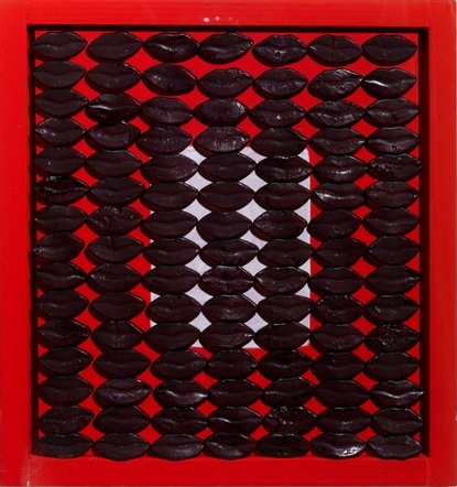 Maurizio Savini (Roma 1962) KISS KISS caramelle, pvc e acrilico su tavola, cm 33x31 sul retro: firmato e datato eseguito nel 2000