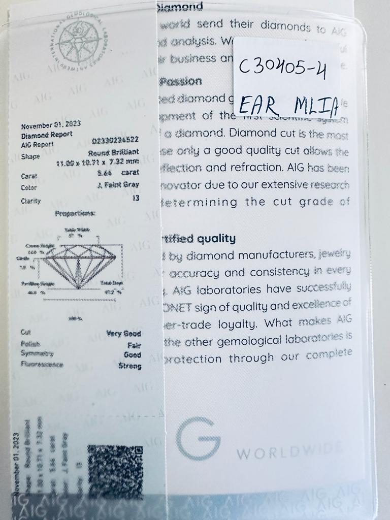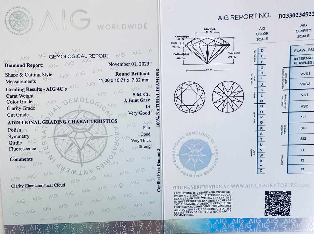 DIAMANTE NATURAL POLISHED 5,64 - COLORE J - PUREZZA I3 - CERTIFICATO AIG - C30405-4