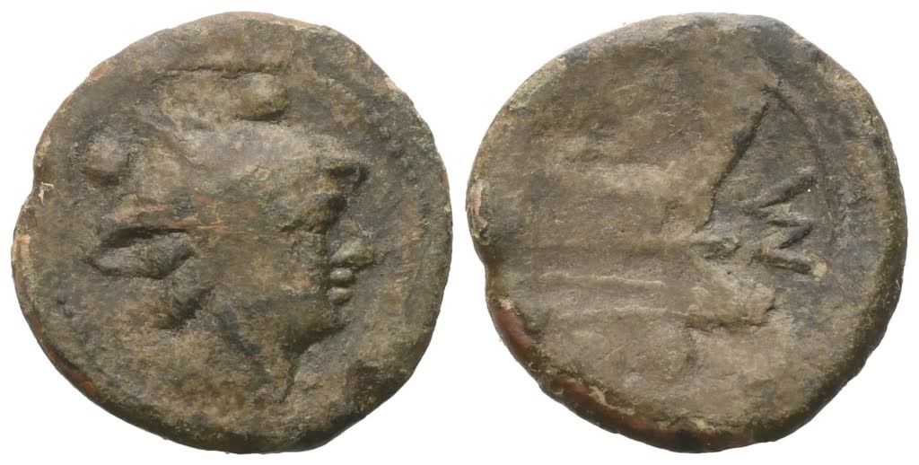 P. Manlius Vulso, Sextans, c. 210 BC; Æ (3,84 g; 19 mm; 5 h)
