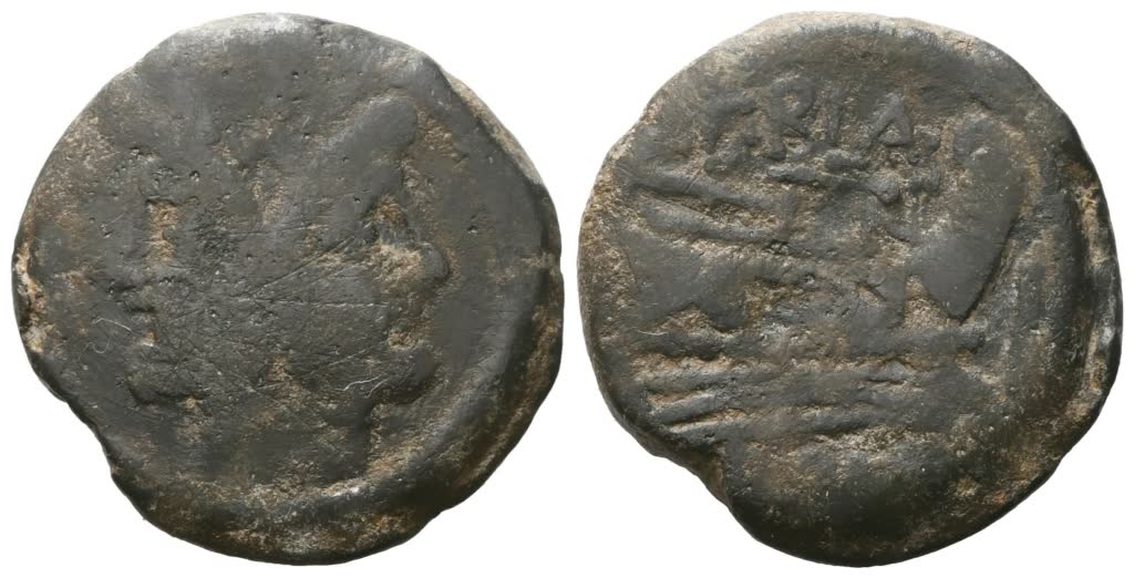 Mint: Rome. Laureate head of Janus; above, I (mark of value); Rv. Prow r.; above, P·BLAS; before, I (mark of value). Below, [ROMA]. Crawford 189/1; Babelon (Cornelia) 6; Sydenham 370. Dark brown patina; a few scratches. Good fine / near very fine.