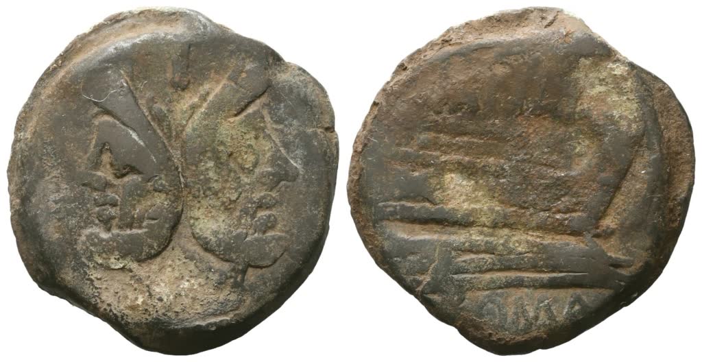M. Atilius Saranus, As, 148 BC; Æ (17,69 g; 31,4 mm; h 3)