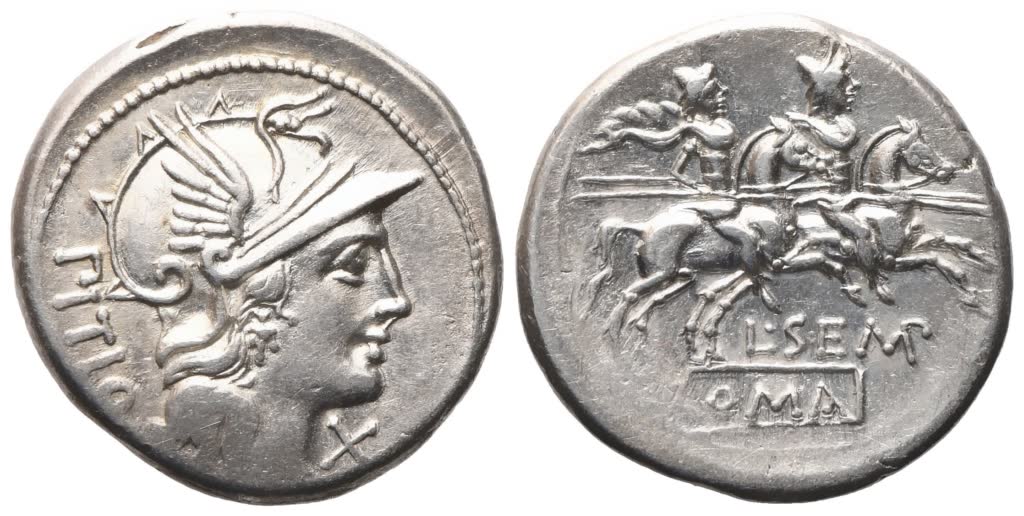 L. Sempronius Pitio, Denarius, 148 BC; AR (3,80 g; 19 mm; 10 h)