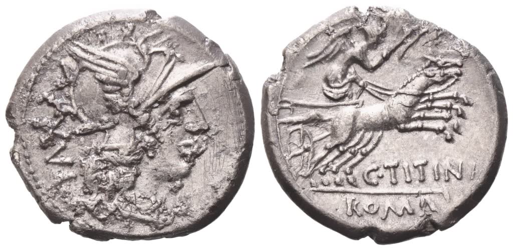 C. Titinius, Denarius, 141 BC; AR (3,78 g; 19 mm; 5 h)