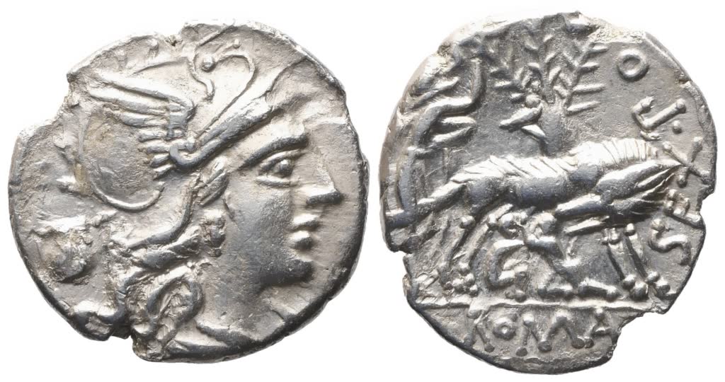 Sex. Pompeius Fostlus, Denarius, 137 BC; AR (3,45 g; 19,5 mm; 9 h)
