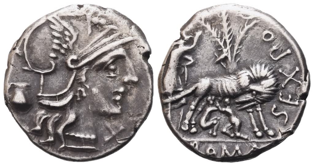 Sex. Pompeius Fostlus, Denarius, 137 BC; AR (3,86 g; 19,5 mm; 11 h)