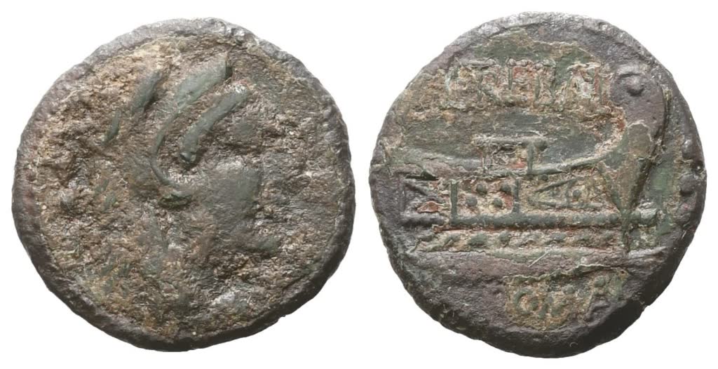 L. Trebanius, Quadrans, 135 BC; Ӕ (3,64 g; 17,9 mm; 2 h)