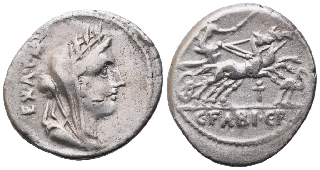 C. Fabius Hadrianus, Denarius, 102 BC; AR (3,84 g; 20,6 mm; 9 h)