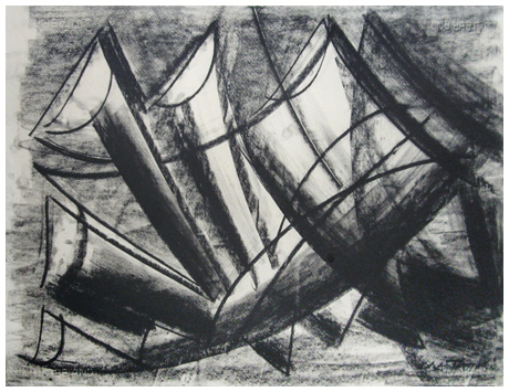 UMBERTO MASTROIANNI Fontana Liri 1910 – Marino Laziale 1998 Senza titolo Carboncino su carta ruvida Fabriano 48 x 66,5. Firma in b. a d.