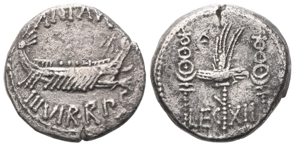 Mark Antony, Denarius, 32-31 BC; AR (3,57 g; 16 mm; 6 h)