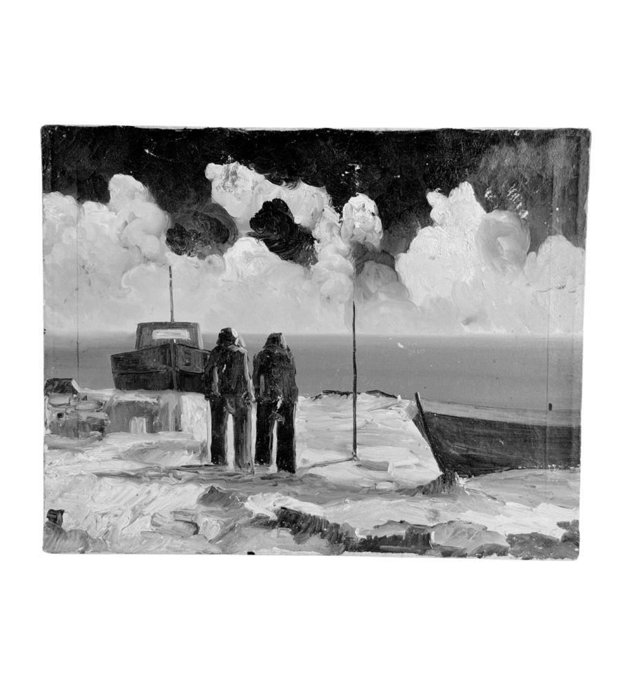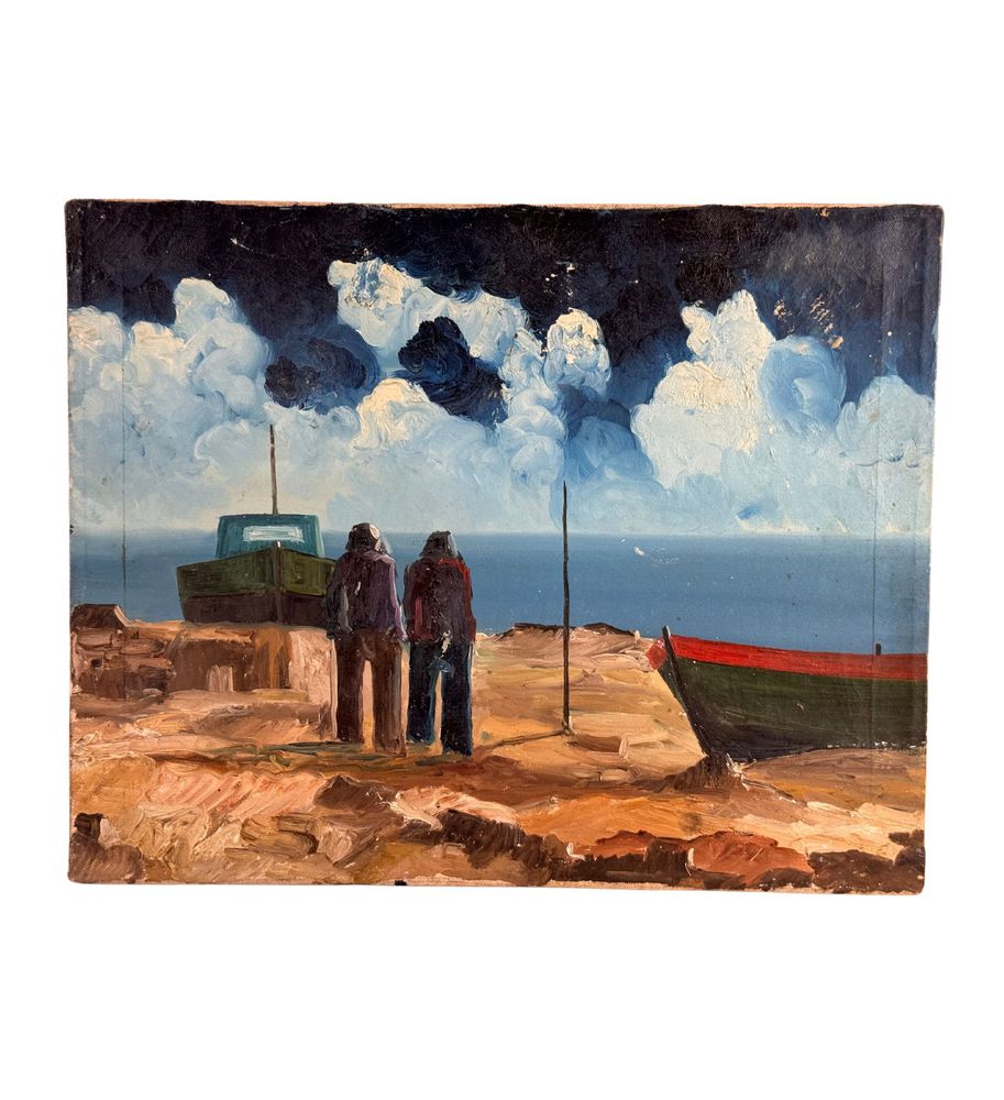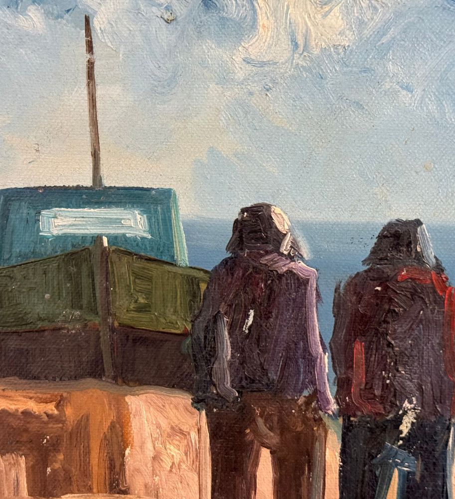 Dipinto olio su tela, periodo XX secolo scuola Italiana, raffigurante Personaggi su marina. Dimensioni: 50x40 cm. Da artista anonimo. Opera in buone condizioni.