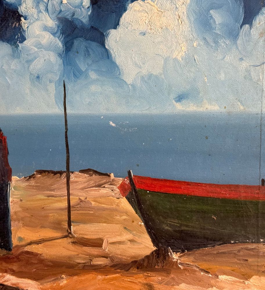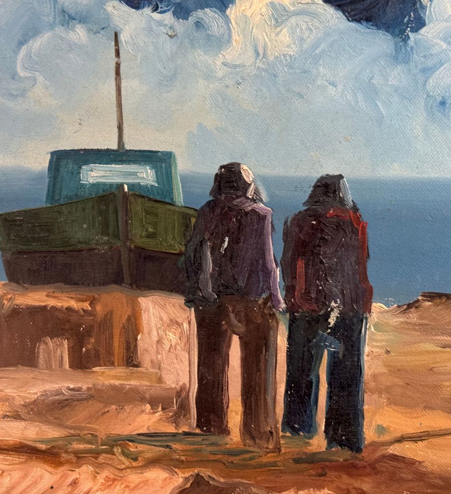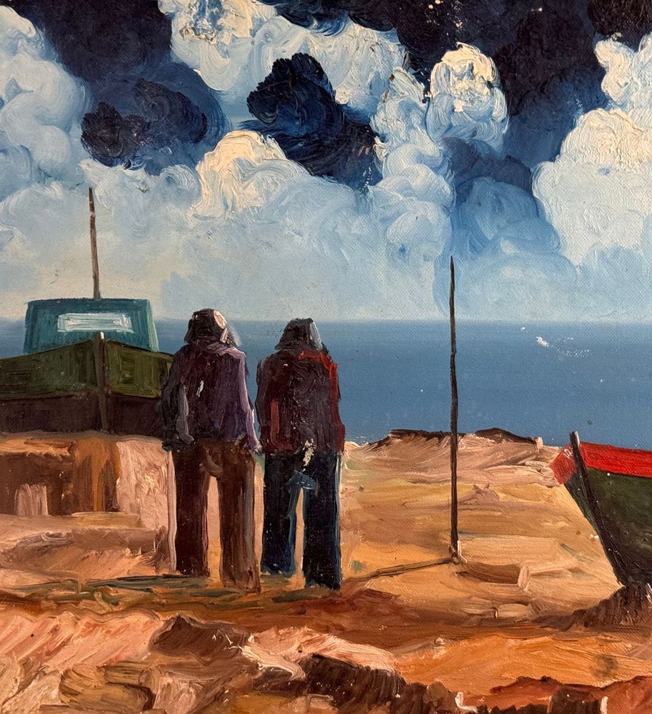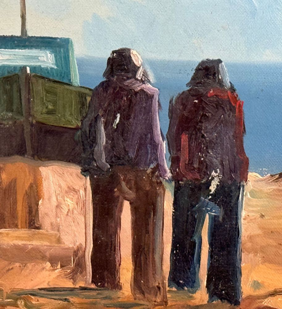 Dipinto olio su tela, periodo XX secolo scuola Italiana, raffigurante Personaggi su marina. Dimensioni: 50x40 cm. Da artista anonimo. Opera in buone condizioni.