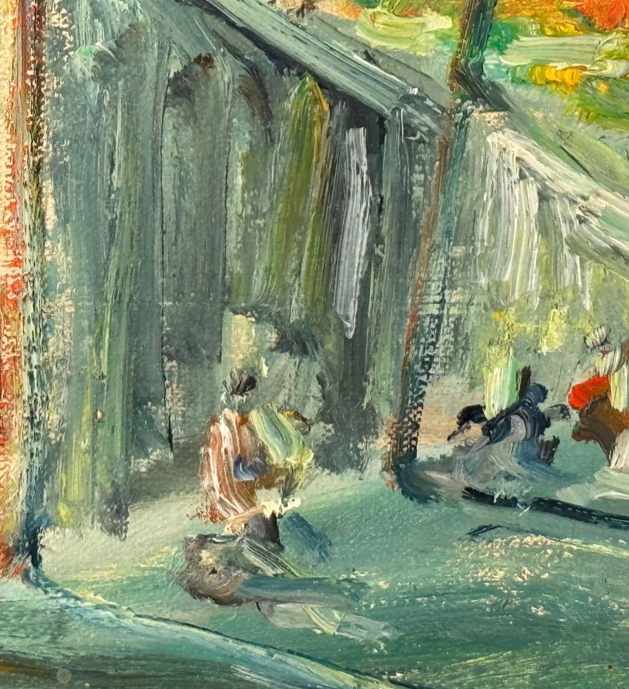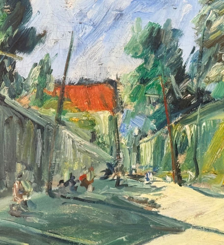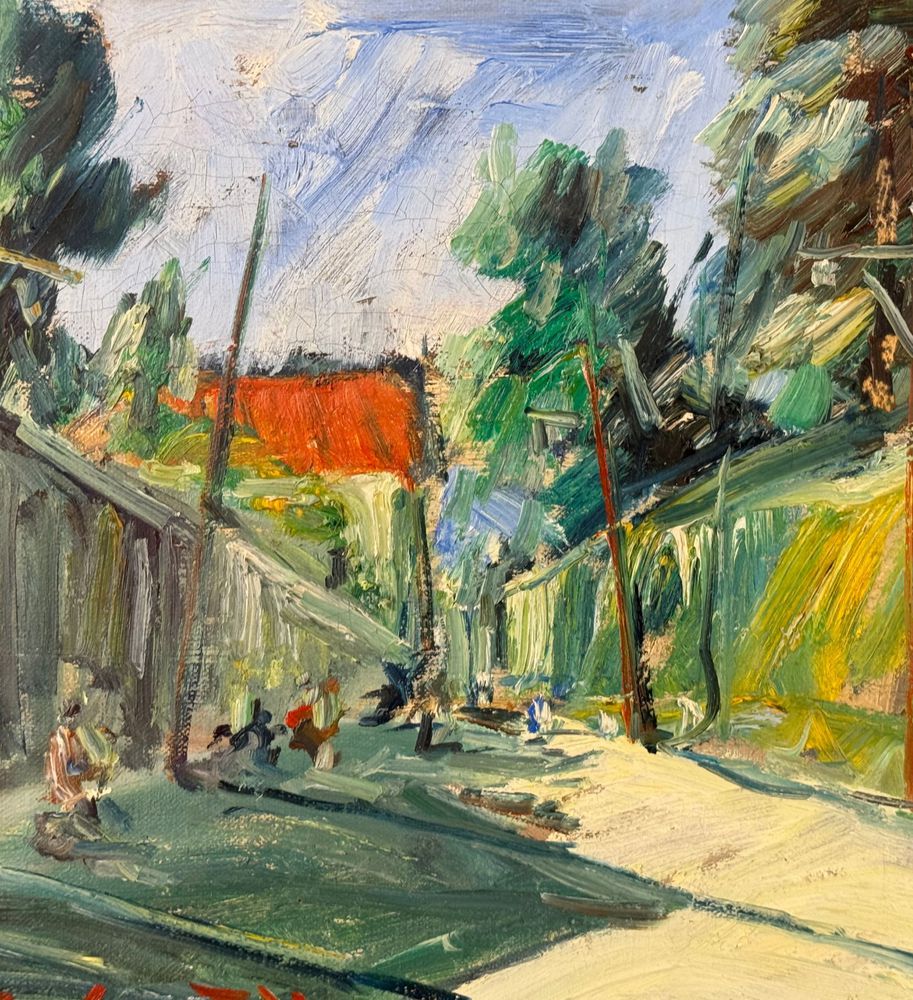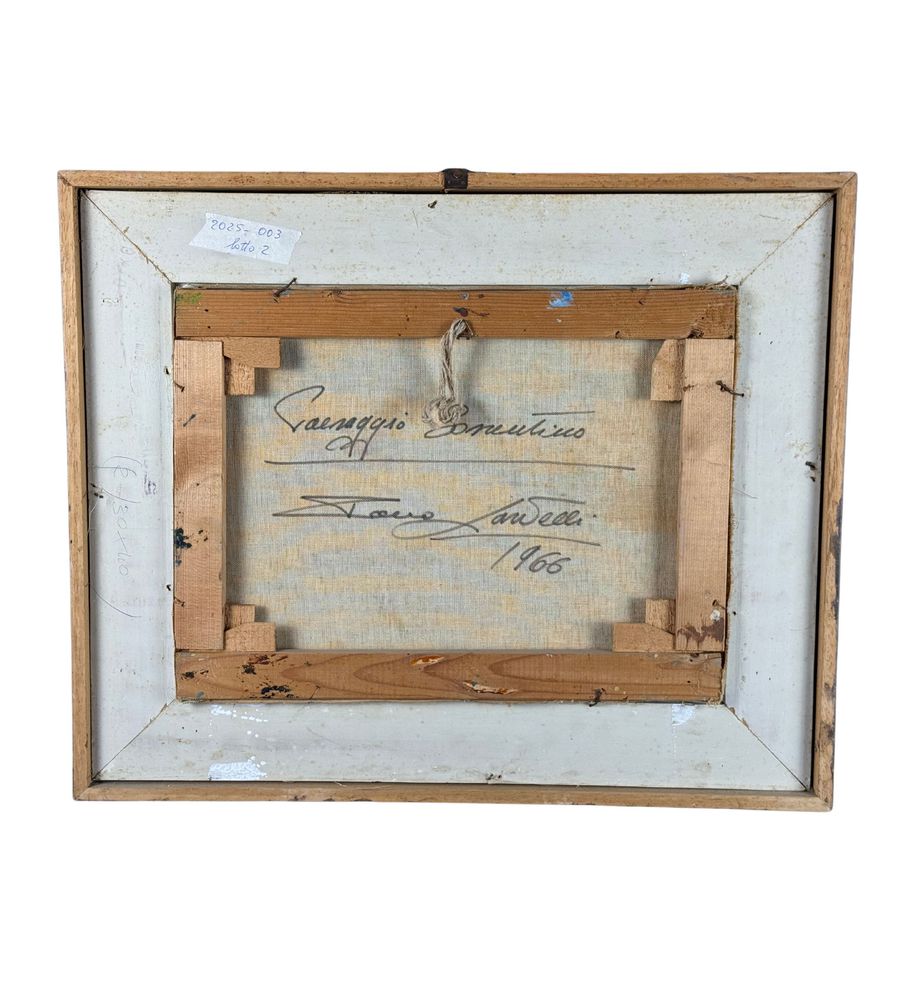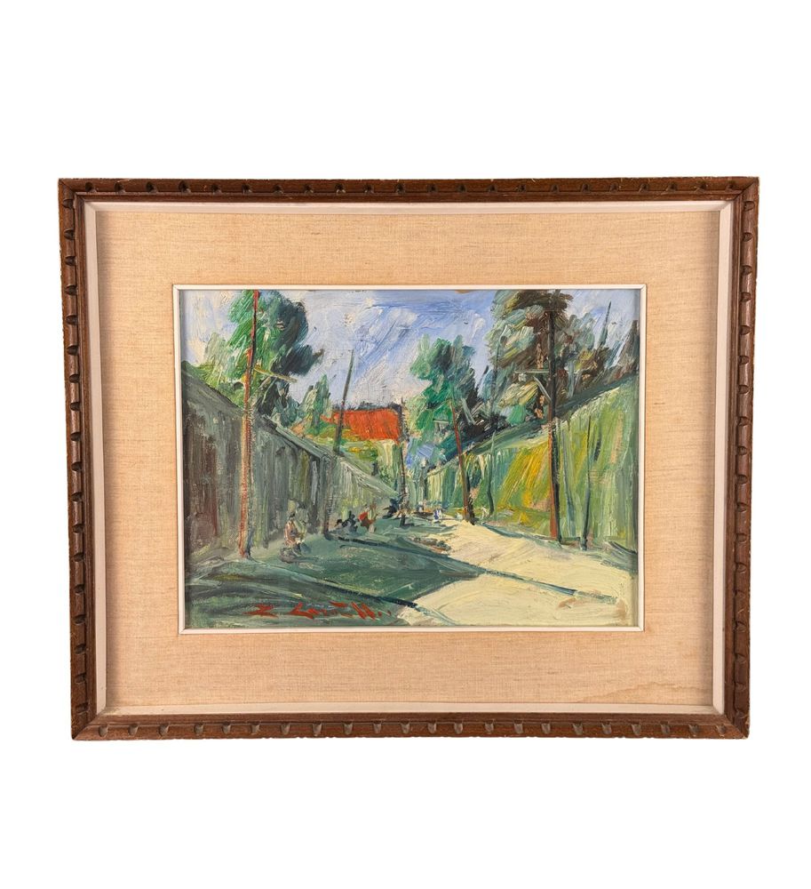 Dipinto olio su tela, periodo XX secolo scuola Italiana, raffigurante Stradina con personaggi. Dimensioni compreso cornice: 56x46 cm. Dimensioni interno cornice: 30x40 cm. Reca firma in basso a sinistra e autentica sul retro da Rocco Carvelli . Opera in buone condizioni.